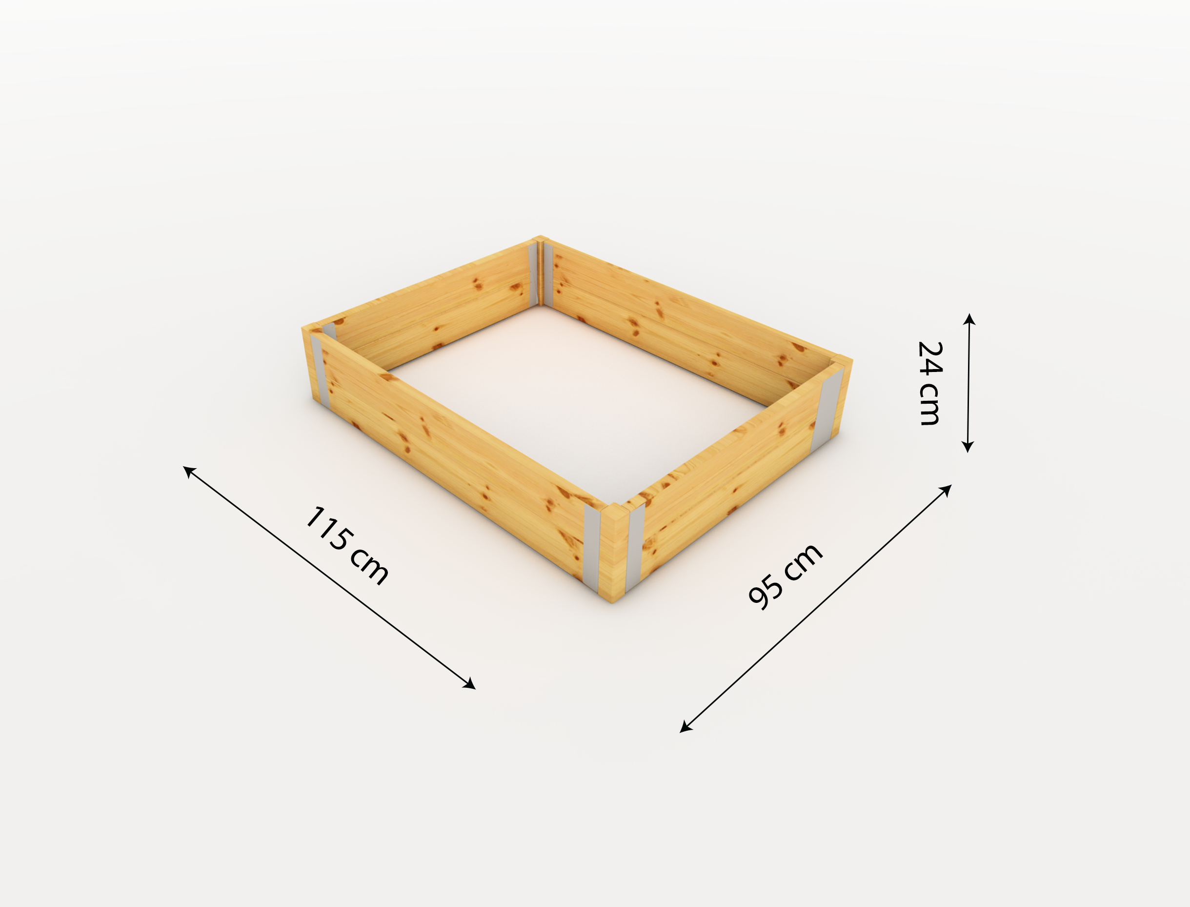 Drewniany warzywnik o szerokości 95 cm i wysokości 24 cm - długość do wyboru.